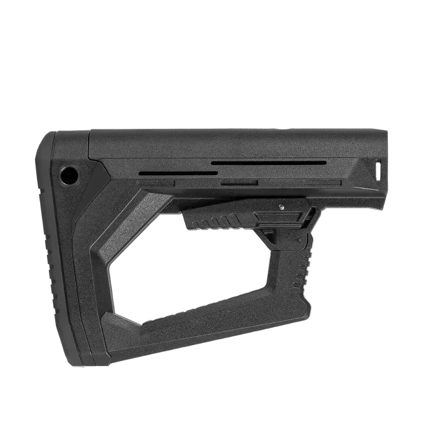 • Главная особенность приклада — встроенная система MILCOM HYBRID. Она автоматически подстраивается под геометрию трубки и полностью убирает люфт. Приклад одинаково плотно сидит на трубках Mil-Spec и Commercial-Spec, независимо от заводских допусков. Никаких переходников и проставок не требуется.