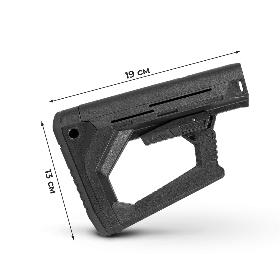 • Текстурированный затыльник из мягкого материала обеспечивает надёжный упор в плечо или бронежилет, не скользит.