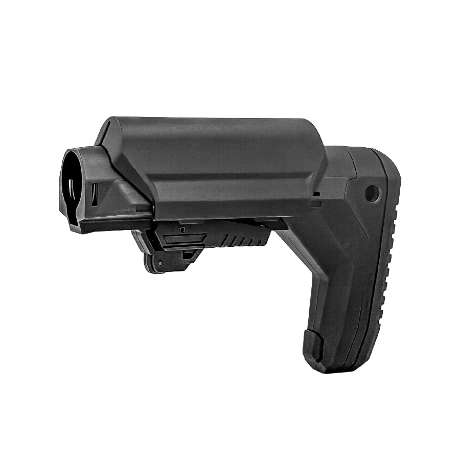 - Главная особенность приклада — встроенная система антилюфт. Она автоматически подстраивается под геометрию трубки и полностью убирает люфт. Приклад одинаково плотно сидит на трубках Mil-Spec и Commercial-Spec, независимо от заводских допусков. Никаких переходников и проставок не требуется.