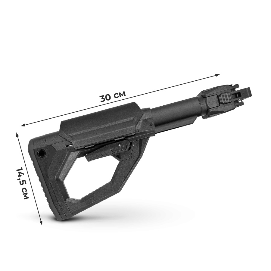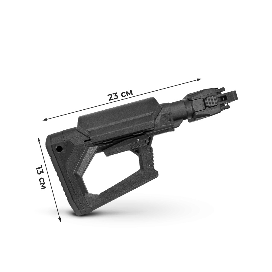Полное решение для установки телескопического приклада на АКМ и АК-74. Труба обеспечивает складывание, приклад — регулировку длины и нулевой люфт. В комплект включена быстросъемная антабка для установки в QD-гнезда приклада.