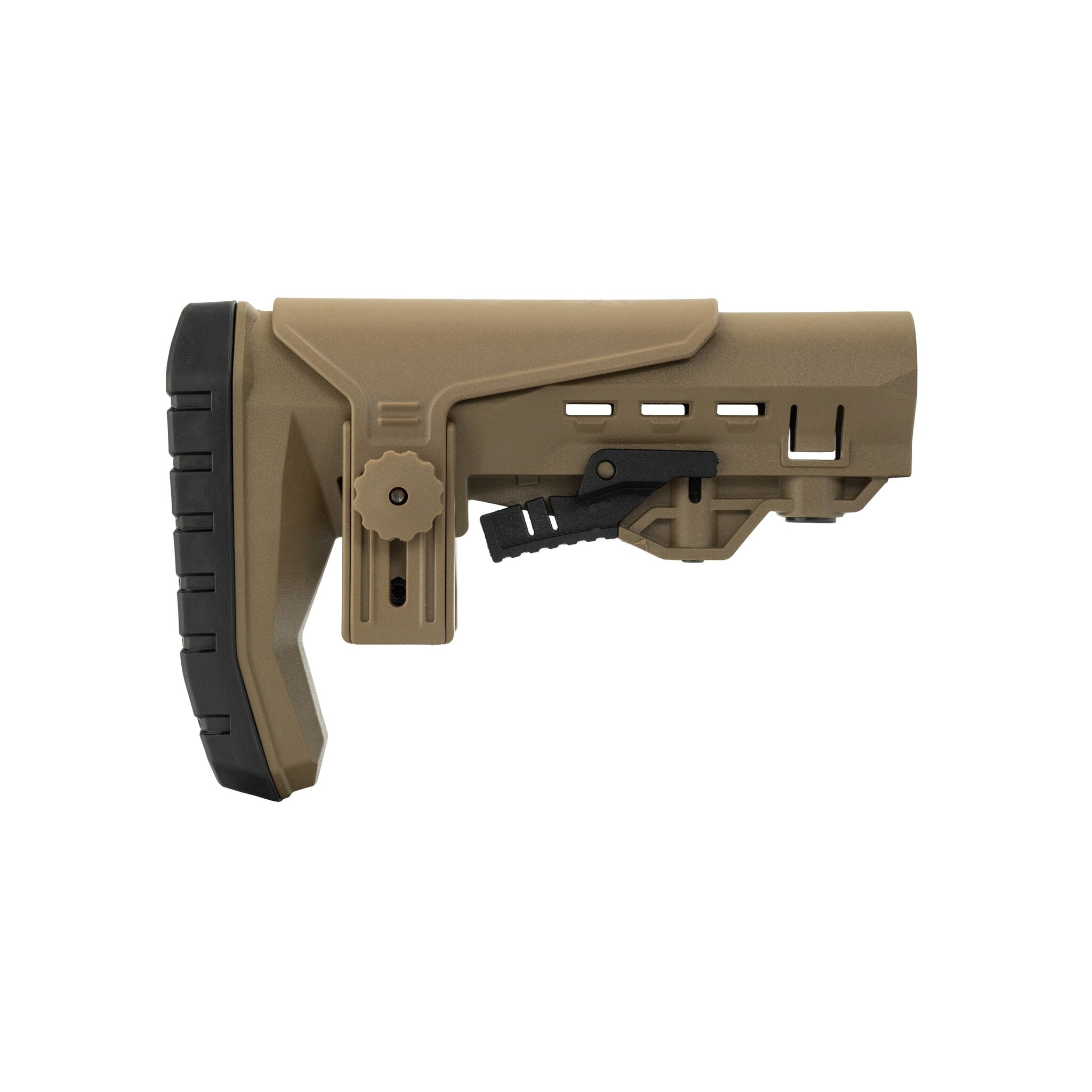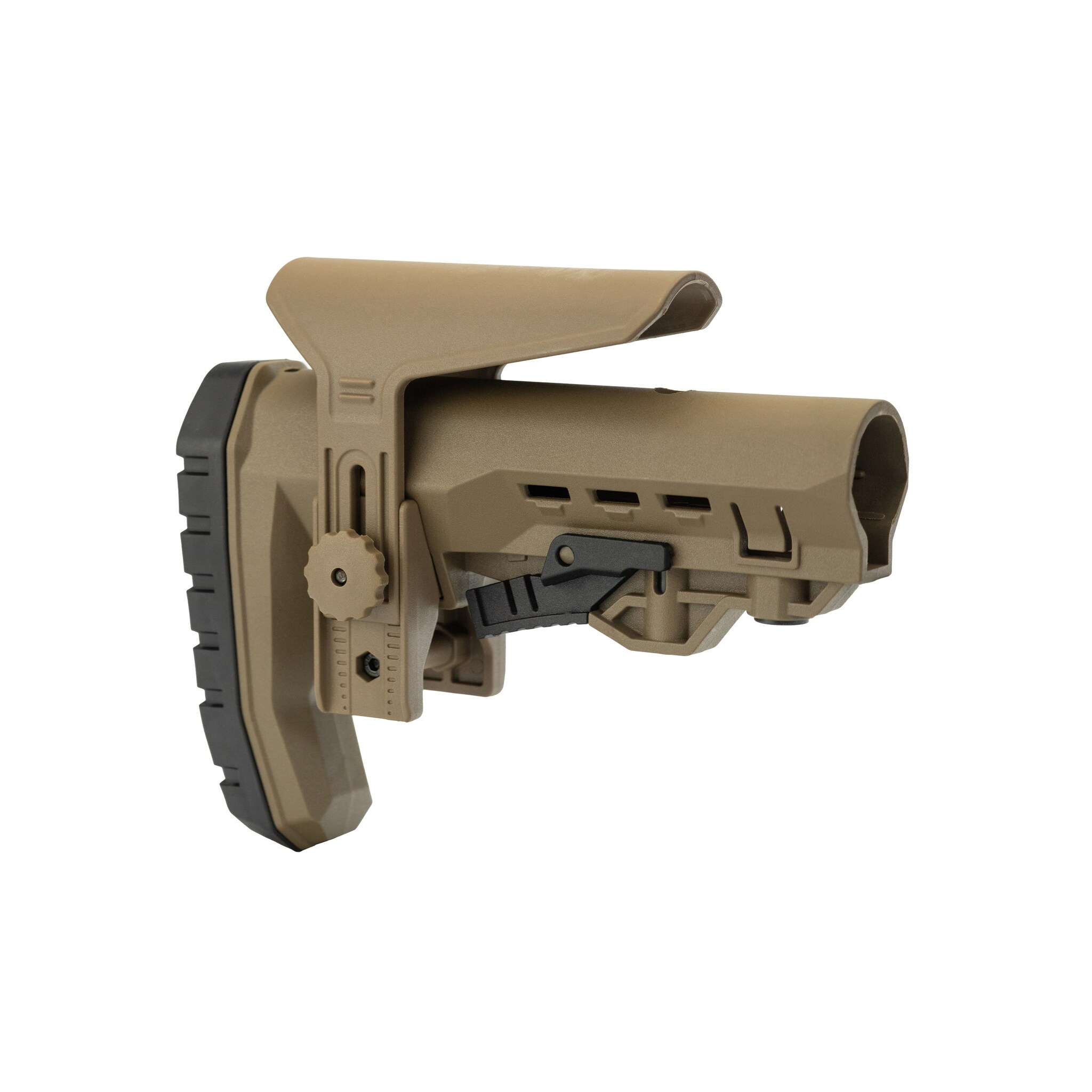 - Нажмите кнопку регулировки базы приклада до характерного щелчка. Может потребоваться усилие. Щелчок означает, что пин базы приклада больше не упирается в трубу.