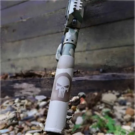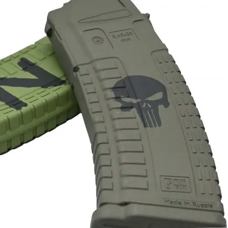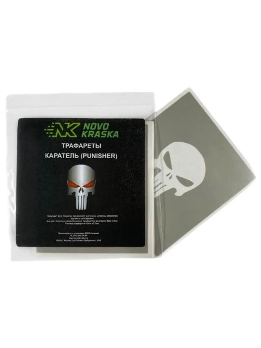 Трафарет "Каратль" или "Мертвая голова" - используется как символический рисунок, предназначен для нанесения на магазины АК. Трафарет выполнен из мягкой виниловой пленки с самоклеющейся основой. Размер трафарета 4,5х4 см. Происхождение рисунка произошло от изввестного сериала компании Marvel, в котором главный герой мстит за убийство своих близких, является эмблемой для устрашения противника. Знак "мертвая голова" имеет древние корни и на универсальном языке обозначает "не боюсь смерти".